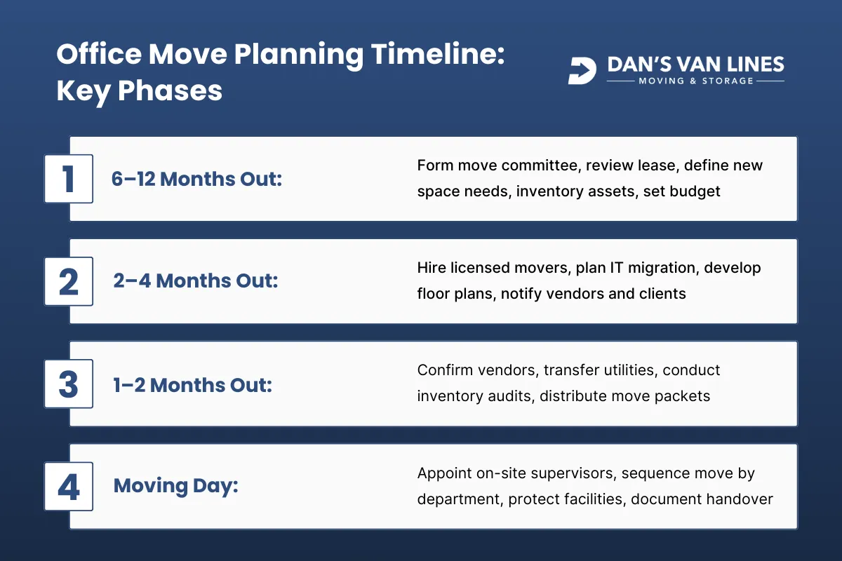 While every move is unique, the following checklist outlines the essential steps for a successful office relocation: